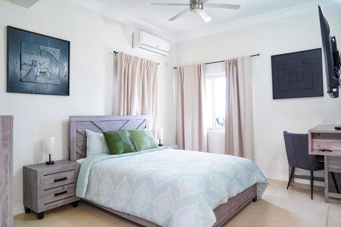 Two-Bedroom Apartment. Boasting a private entrance, this air-conditioned apartment comes with a kitchen, 2 bedrooms and 2 bathrooms with a walk-in shower and a hairdryer. In the kitchen, guests will find a stovetop, a refrigerator, kitchenware and an oven. Featuring a balcony with city views, this apartment also features a washing machine and a flat-screen TV. The unit has 2 beds.