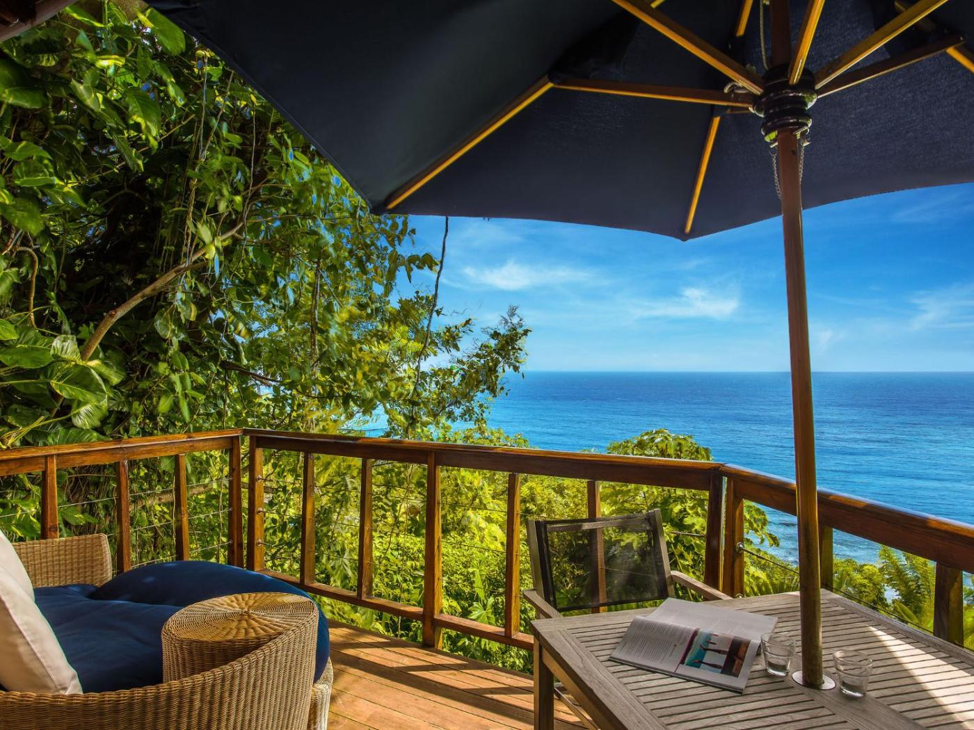 Cottage with Ocean View. This cottage features a steam room and a balcony with an ocean and forest view. ;