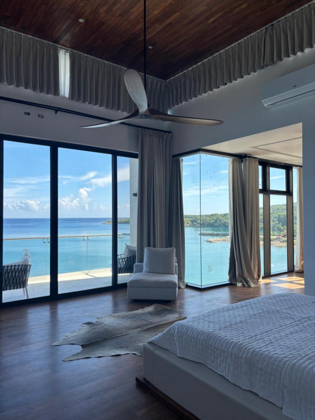 Villa. This villas special features are the pool with a view and the hot tub. Featuring a private entrance, this air-conditioned villa comprises 1 living room, 4 separate bedrooms and 7 bathrooms with a walk-in shower and a bath. Guests will find a stovetop, a refrigerator, a dishwasher and kitchenware in the well-fitted kitchen. The villa also provides guests with a barbecue. The spacious villa provides a flat-screen TV with streaming services, a washing machine, soundproof walls, a minibar as well as sea views. The unit offers 8 beds.